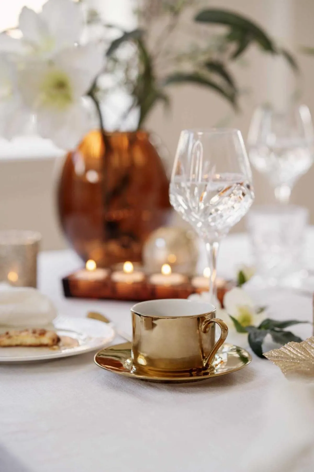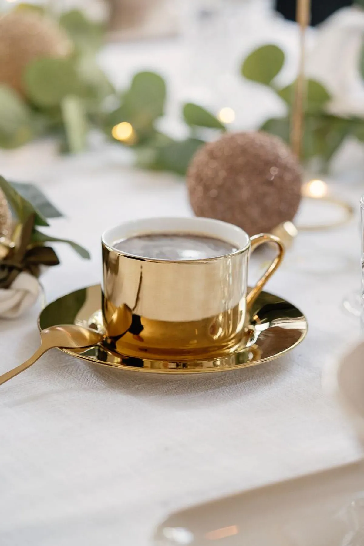 Nydelig sett med to kopper i gull i gull som passer perfekt til kaffe, te og andre ønskelige drikker.
