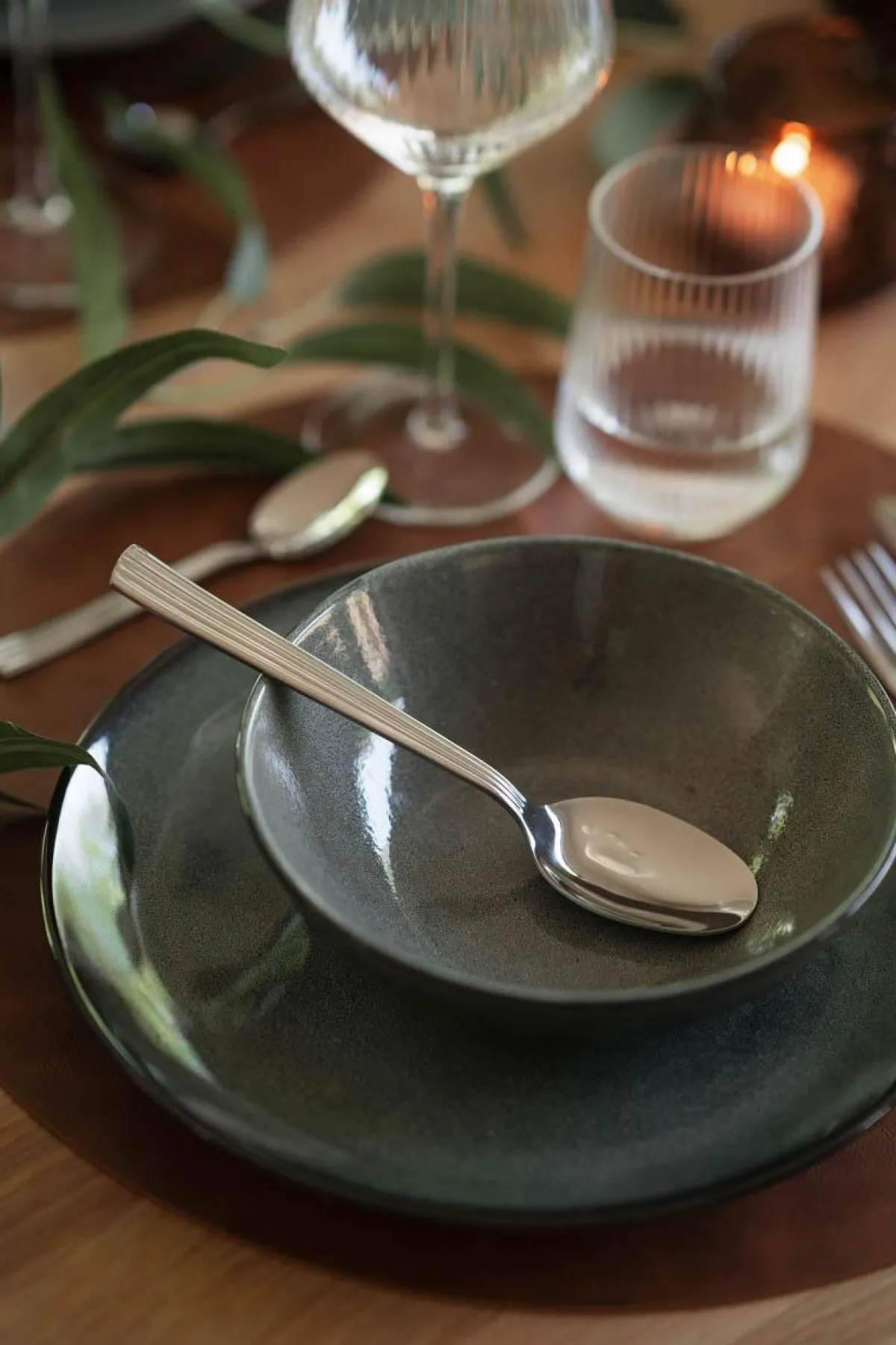 Håndlaget grønn middagstallerken fra med et moderne og stilrent design. Steintøyet er nydelig både til hverdag og fest, og det tåler å bli brukt da det har reaktiv glasur. Vi elsker den unikheten det gir når den er håndlaget – ingen produkter er like, og gir en fantastisk stemning.