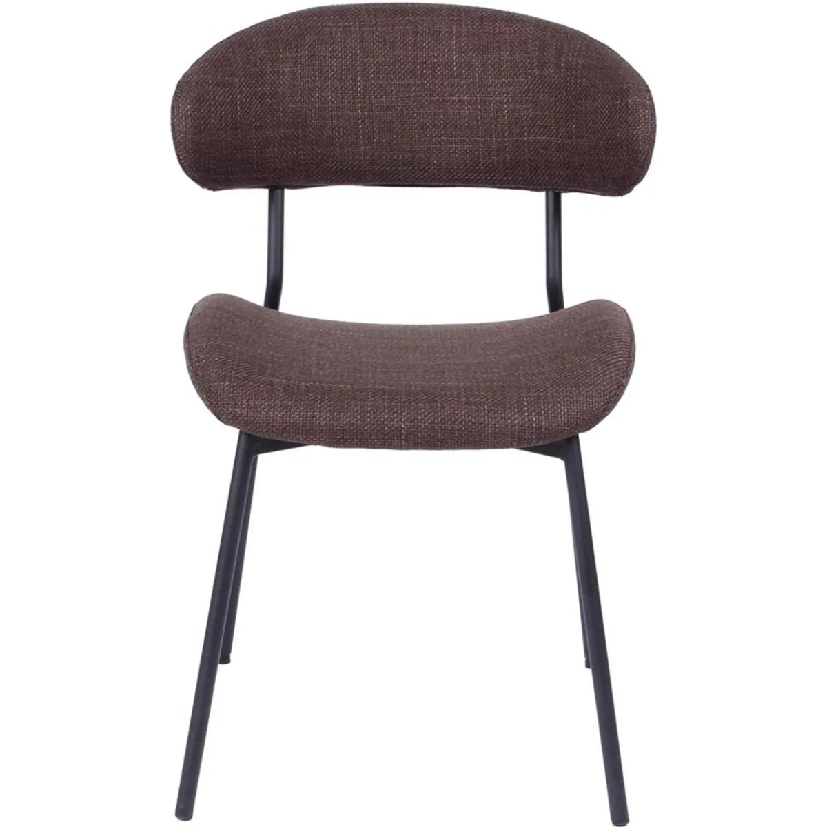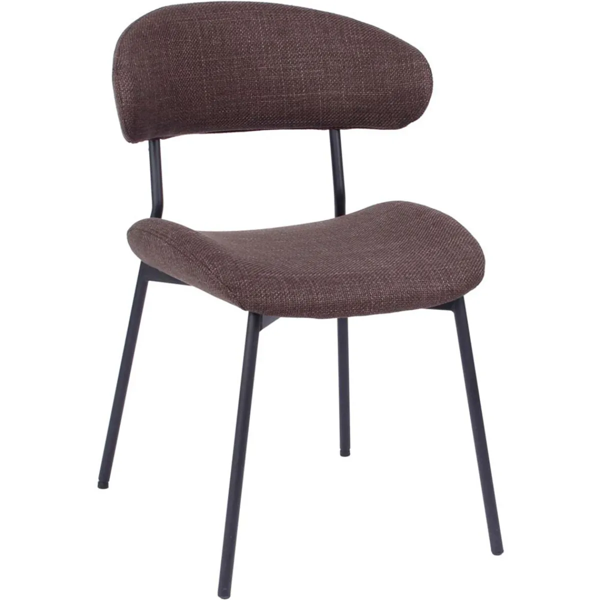 En spisestol med trendy form– med buet rygg og sete som gir både støtte og komfort. Den varme brunfargen gir et lunt preg, og stolbena i matt sort stål gjør at den passer like godt rundt et lyst spisebord som i et mørkere interiør.