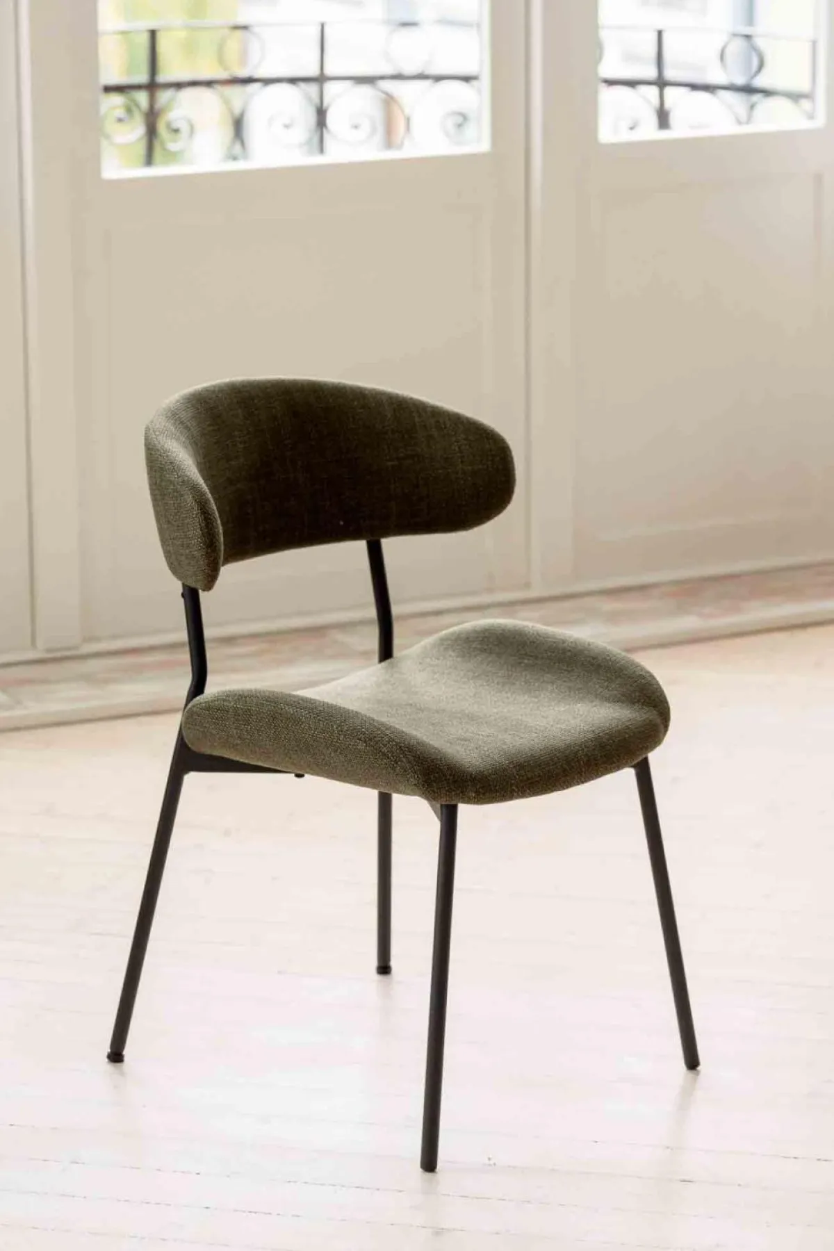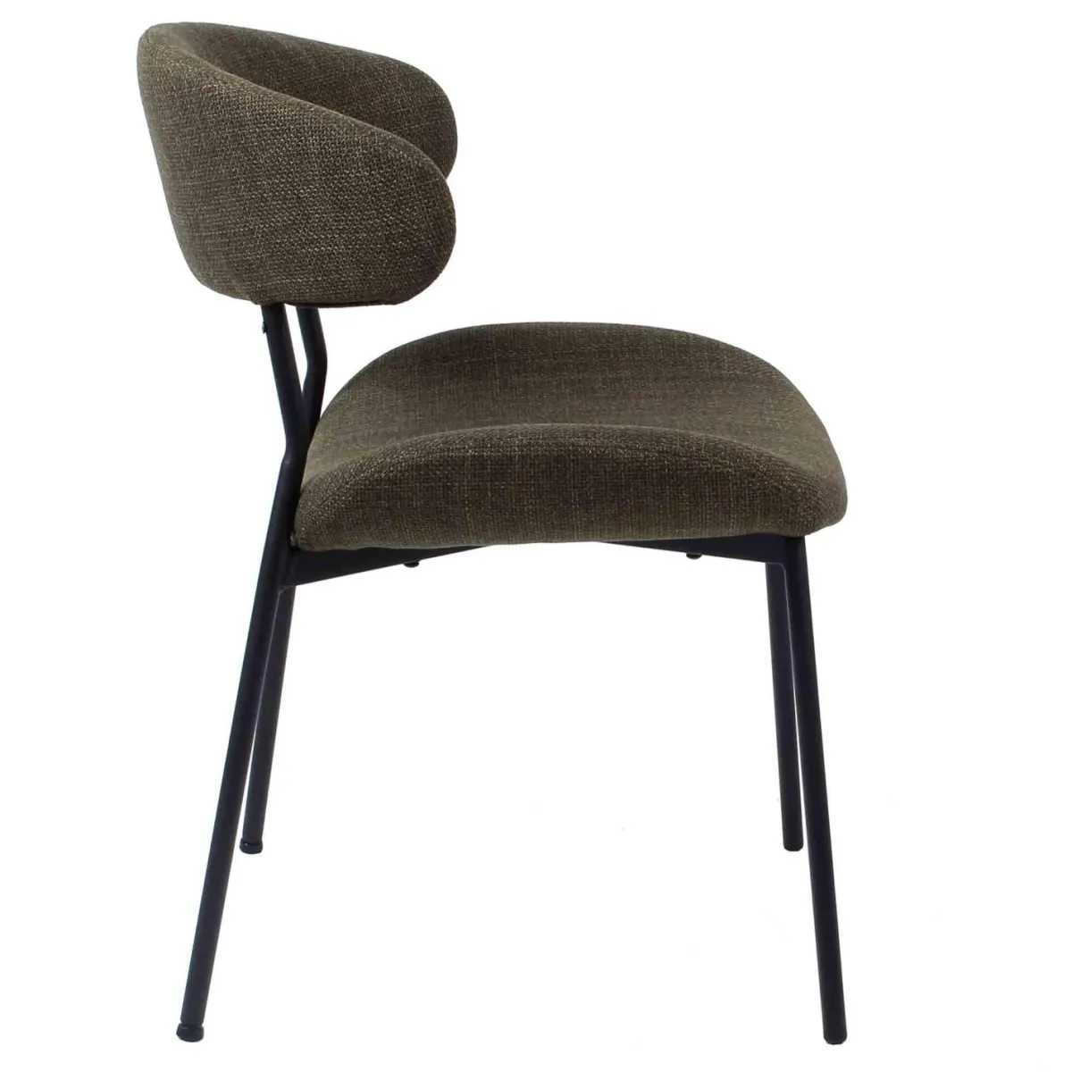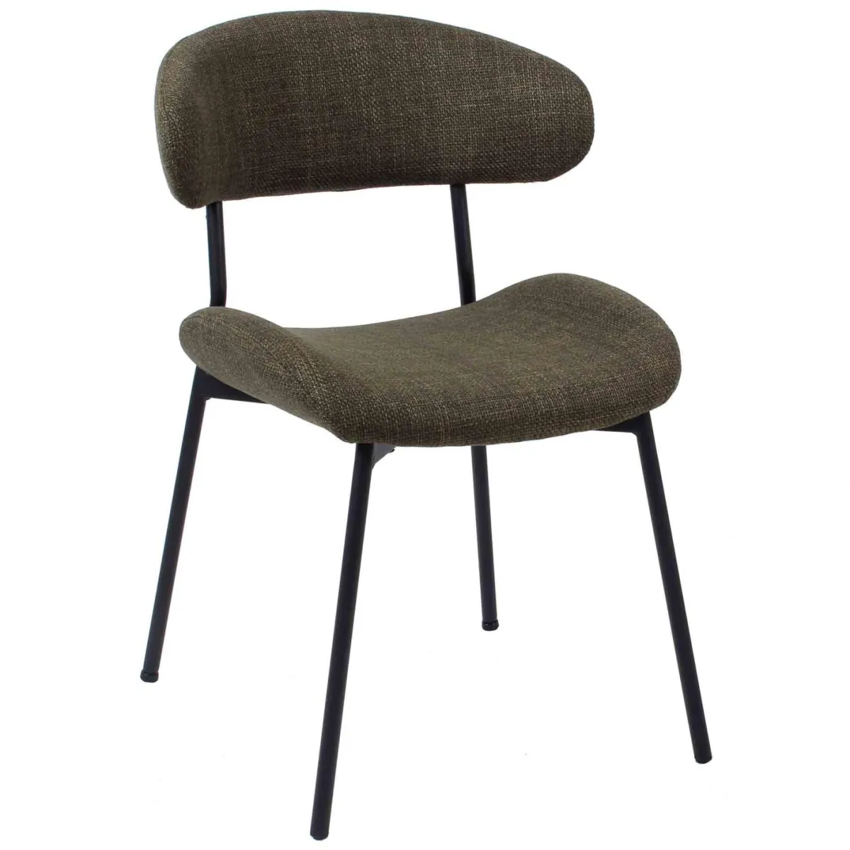 En stilig og trendy spisestuestol. Evi stolene har buet rygg og sette, så den rammer inn kroppen og gir god komfort. Med stolben i matt sort stål passer den inn i alle hjem.