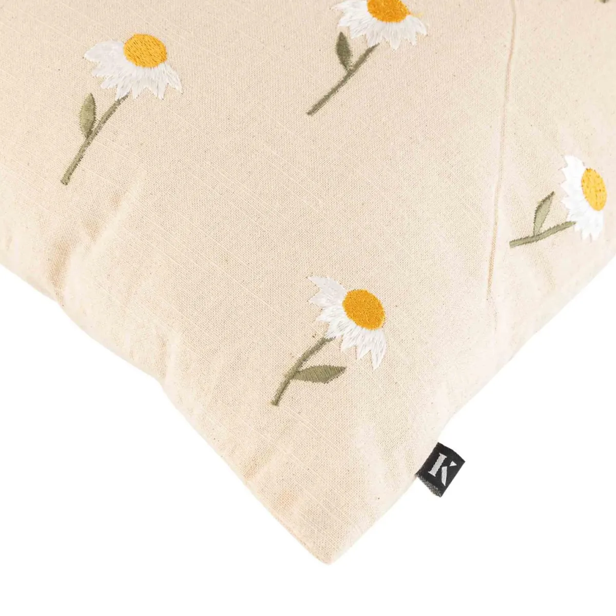 Søtt putetrekk med sitt enkle, men livlige design gir et friskt pust til enhver stue eller soverom. Med vakre blomsterbroderier sprer det glede i sofaen eller i lesekroken. Perfekt for å få litt ekstra varme og lys i hjemmet, og kanskje et fint komplement til andre blomstrete tekstiler.