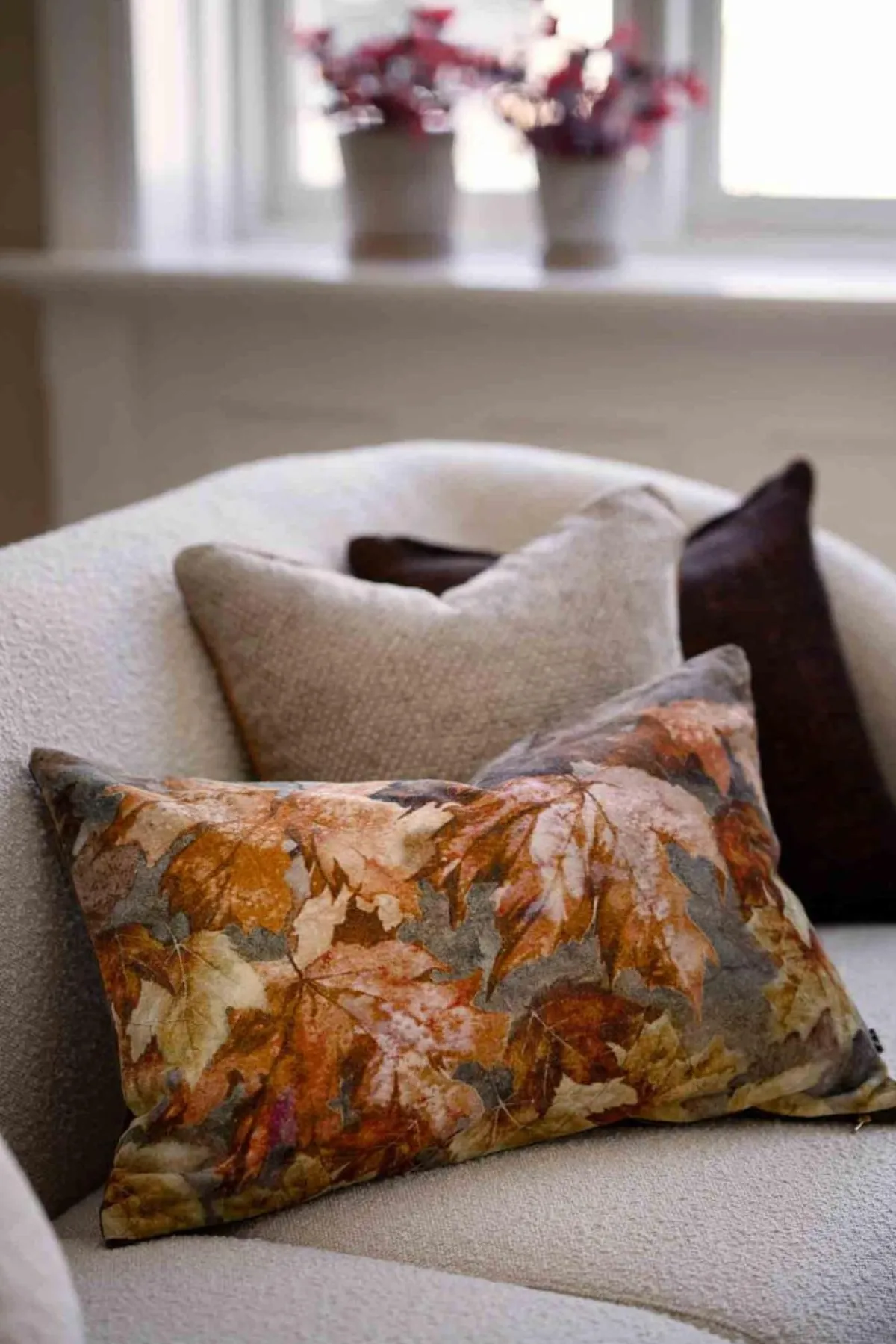 Skap en lun høststemning i hjemmet ditt med dette myke velurputetrekket, dekorert med et vakkert motiv av lønneblad. Perfekt for å bringe naturens skjønnhet innendørs, vil dette putetrekket tilføre eleganse og kos til enhver sofa eller lenestol.