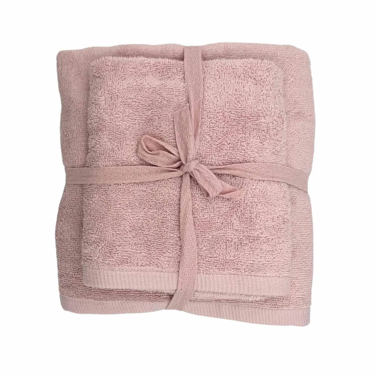 Dette settet består av to myke håndklær i en nydelig dus rosa farge. Settet består av et håndhåndkle og et dusjhåndkle. Perfekt til badet eller gjestetoalettet.