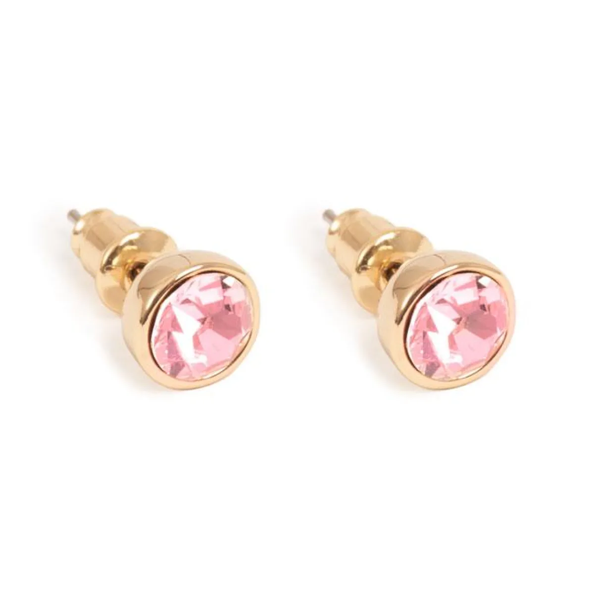 Delikate små øredobber i gull med en skimrende rosa stein. Utrolig søte!